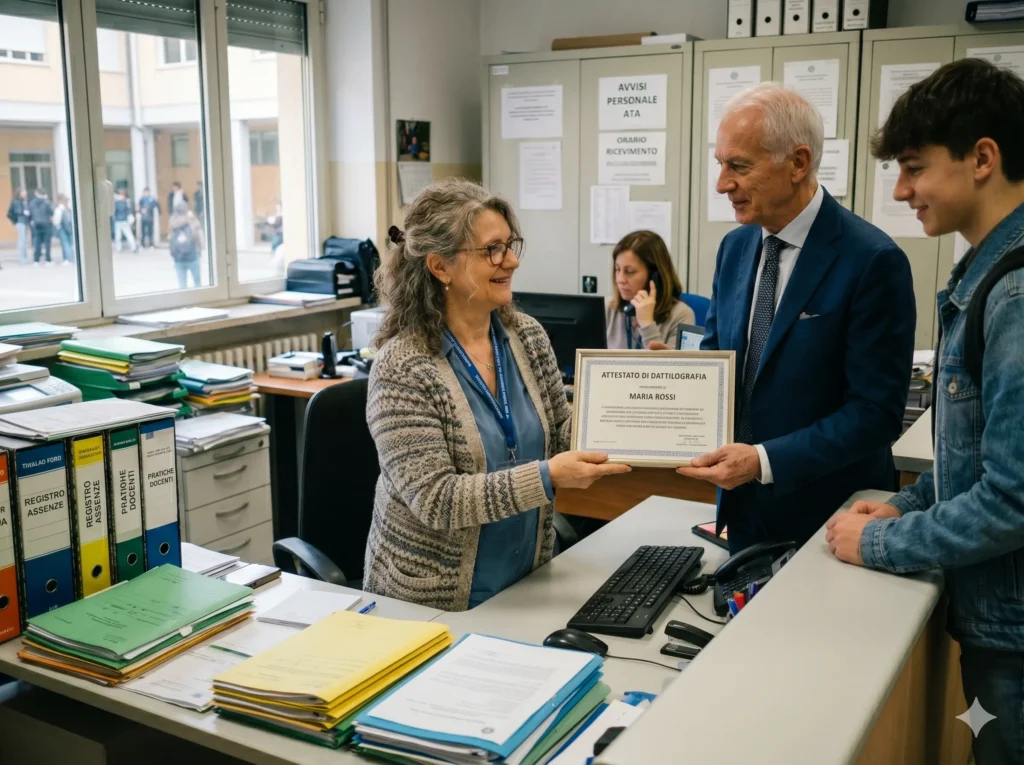 A tal proposito, la digitalizzazione non ha ridotto il volume di scrittura prodotto in segreteria: lo ha trasformato. Non si battono più documenti su carta carbone in tre copie, ma si compilano modelli su SIDI, si caricano dati su NoiPA, si registra il protocollo informatico, si elaborano determine su software gestionali, si redigono email istituzionali destinate a famiglie, docenti, uffici scolastici regionali e ministero.
